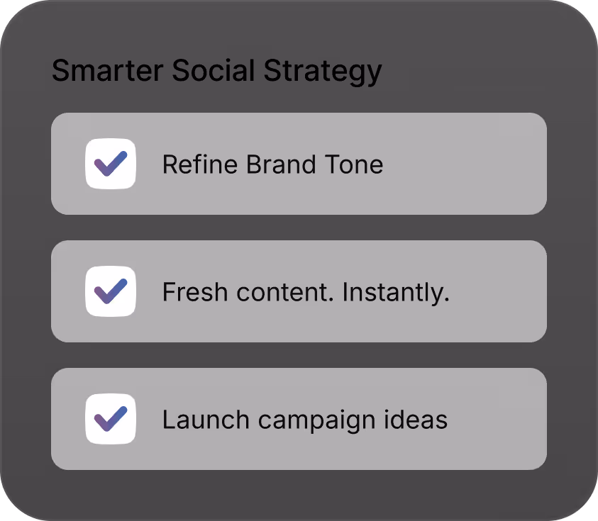 Simply put enter your brand and let AI do the work. Our AI will research your website, socials, news and any internal brand documents.